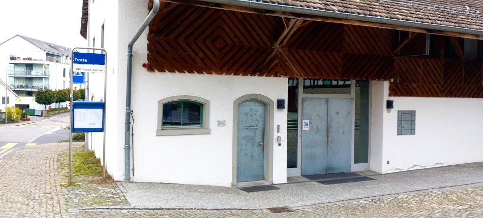 Zwei Bushaltestellen sind direkt nebenan: Thalwil Trotte und Thalwil Mühlebachplatz.